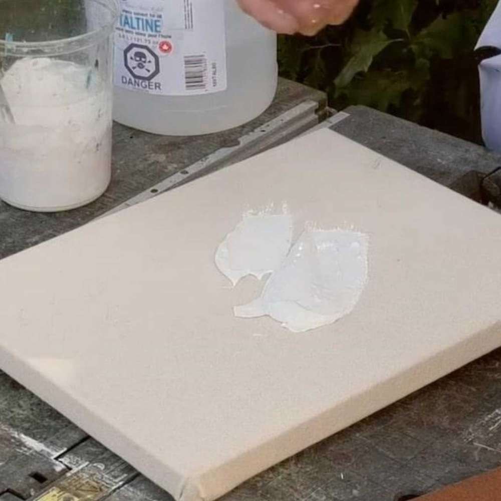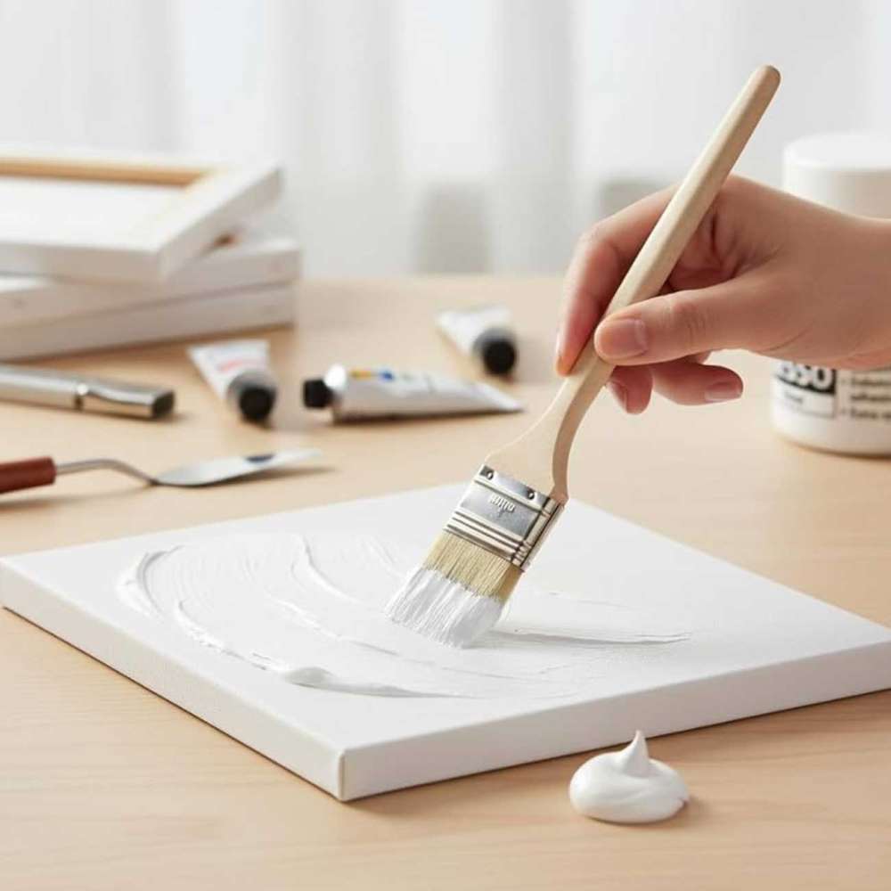 Use a brush, roller, or sponge to apply a thin, even layer of white gesso.